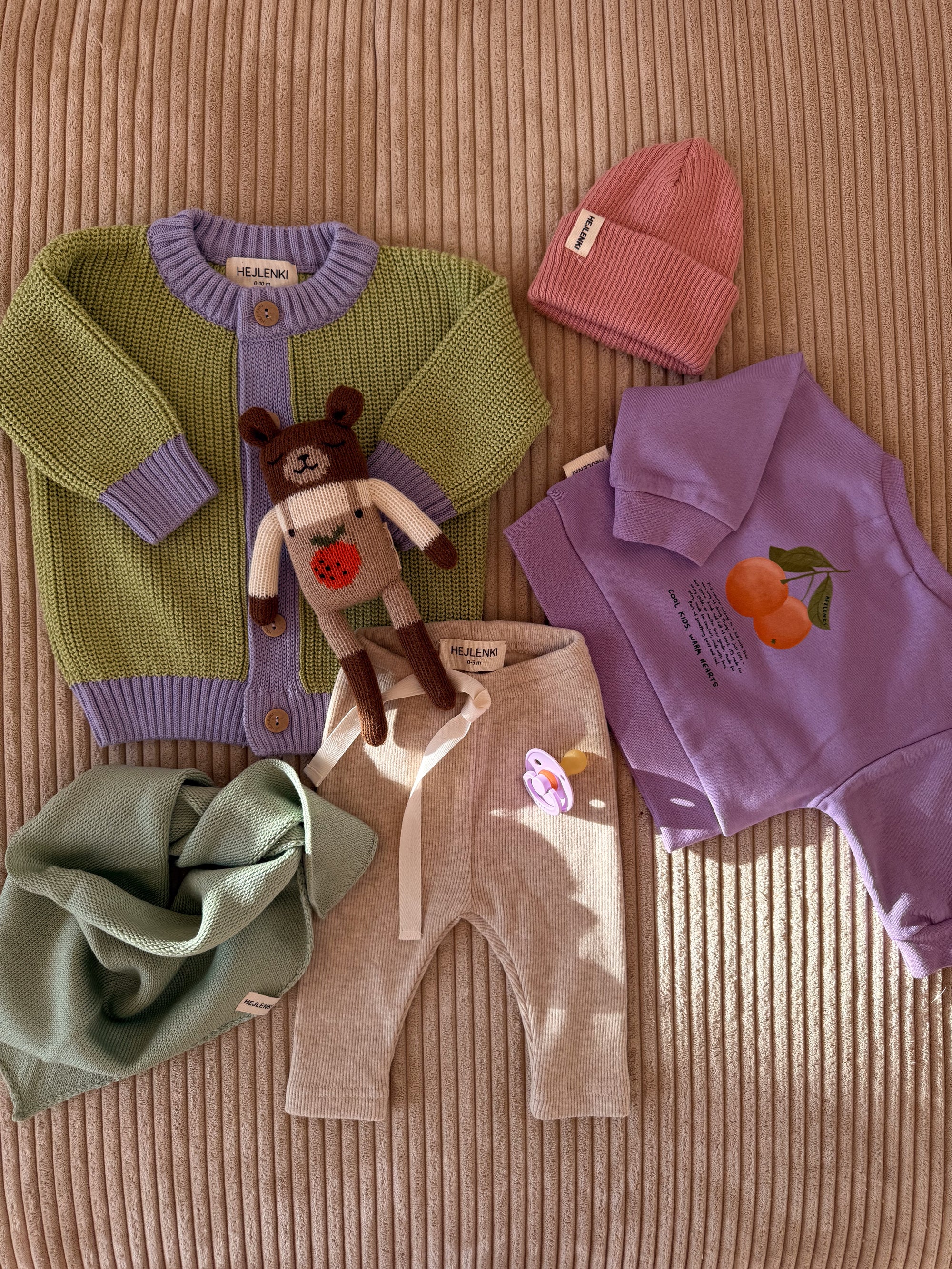 KNIT BEANIE PEACH LAVENDER
